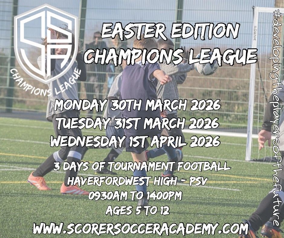 Join us for 3 Days of Tournament football this Easter Holidays. Who will be crowned the Champions League Winners Easter 2026. Open to all, Footballers aged 5 to 12